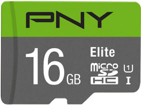 A 16GB Class 10 U1 microSDHC Flash Memory Card. We used a PNY 16GB micro SDHC memory card from Amazon, cost about $5.